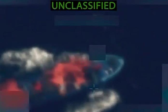 Al igual que en imágenes anteriores difundidas por el gobierno estadounidense, las áreas de la embarcación están difuminadas, lo que hace imposible verificar cuántas personas iban a bordo.