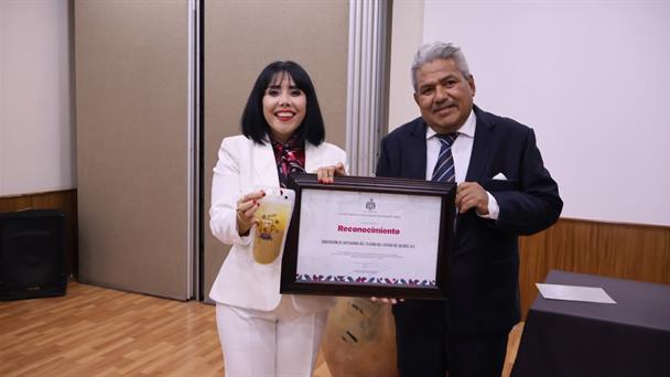 Por mantener vigente la elaboración de una de las bebidas más típicas de la entidad, la diputada de Morena, Marta Arizmendi Fombona, entregó un reconocimiento a la Asociación de Artesanos del Tejuino del Estado de Jalisco, que preside Martín Ramírez Macías.