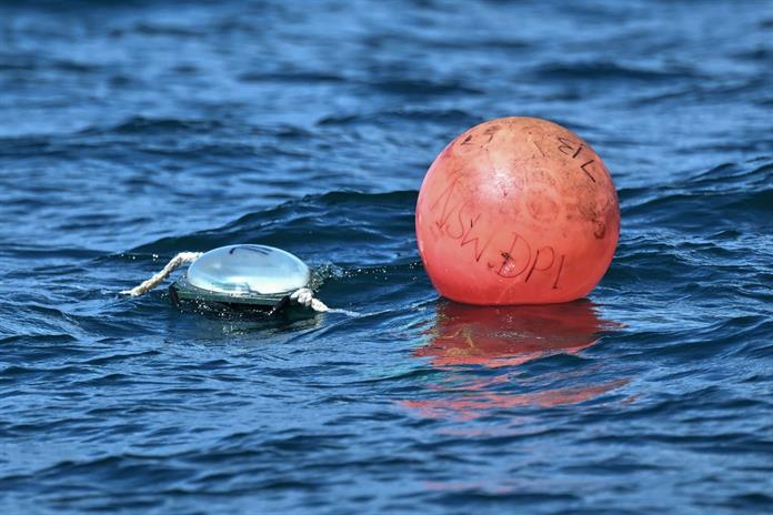 Cada día, los trabajadores colocan 305 boyas conectadas por satélite en las aguas más concurridas, con una profundidad de hasta 15 metros, en la costa de Nueva Gales del Sur como parte del programa estatal.