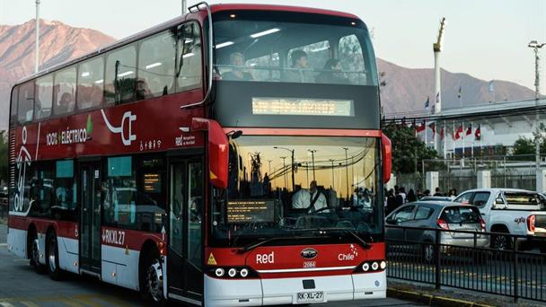En Chile circulan más de 3.400 autobuses eléctricos en el transporte público, todos de origen chino, y de este total, 3.125 autobuses lo hacen en la capital del país, entre ellos los 10 de dos pisos que se han transformado en la postal de Santiago.