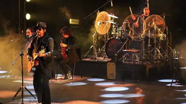 El concierto comenzó poco después de las 21:00 horas, con el escenario iluminado en tonalidades azules y el exvocalista de La Ley vestido de negro, sombrero incluido.