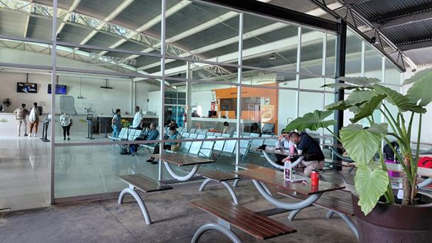 “Nos acabamos de enterar aquí. Algo habíamos visto, pero no sabíamos, y no nos dicen nada; solo que esto tal vez se tarde algunos días. Nosotros vamos a Puerto Vallarta; compramos el boleto en línea y no decía nada...