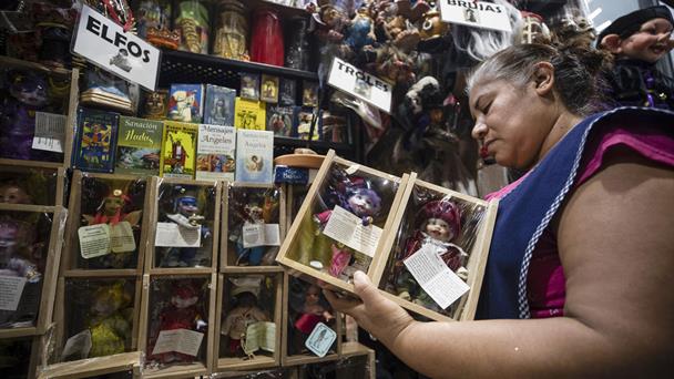 Los estrechos pasillos del popular Mercado de Sonora, ubicado en Ciudad de México, son visitados por miles de mexicanos antes de que finalice el año para consultar la fortuna con brujos o tarotistas, mientras que otros buscan proteger la suerte comprando amuletos, duendes y hasta vestidos para la Santa Muerte.
