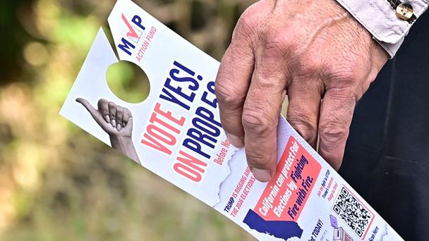 - La principal publicidad a favor de la "Proposición 50" imagina a Trump furioso gritándole a la televisión tras la victoria del referendo, junto al eslogan "Dale con todo a Trump".