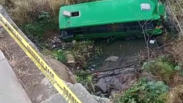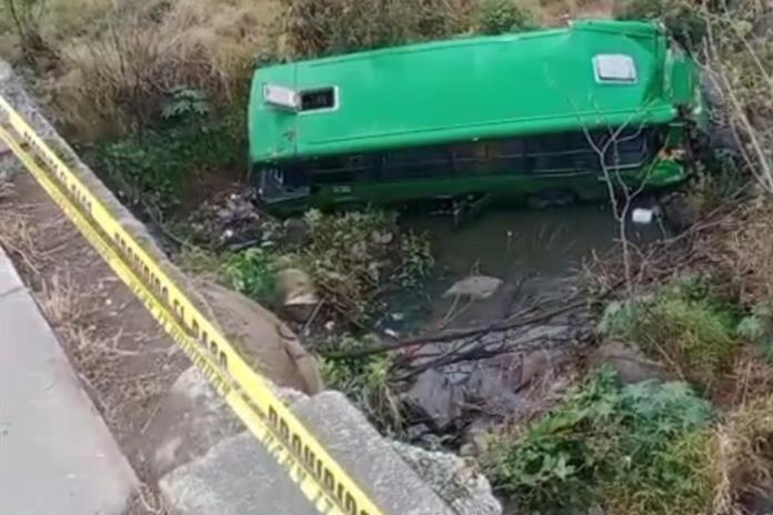 La unidad quedó completamente destrozada tras caer a una profundidad aproximada de 8 metros. Al realizar la revisión del interior del camión, no se localizó al conductor ni a pasajeros.