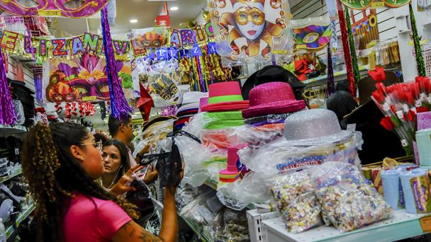 A una semana del Carnaval de Río de Janeiro, los comercios de la ciudad comienzan a abarrotarse de gente en busca de disfraces y adornos con lentejuelas para bailar y cantar al ritmo de las comparsas callejeras de la más emblemática fiesta de Brasil.