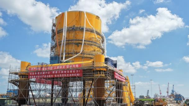 En un muelle cercano a la ciudad, los trabajadores se apresuran a terminar una gran cápsula amarilla, en una apuesta por una infraestructura tecnológica alternativa que enfrenta dudas sobre su impacto ecológico y su viabilidad comercial.