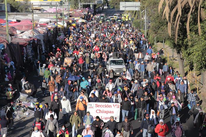 Maestros de la Coordinadora Nacional de Trabajadores de la Educación (CNTE) se manifiestan este jueves, en Ciudad de México (México). EFE/ Mario Guzmán