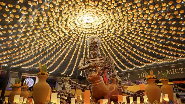 La muerte también se honra y se disfruta, por eso habitantes del Valle de Catrinas, en el central estado de Puebla, presentan 17 calaveras monumentales que representan a todas las personas que han fallecido y se dedicaban a oficios tradicionales en México.