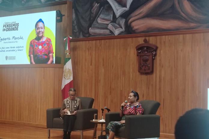 La Premio Nobel, Rigoberta Menchú Tum visiblemente emocionada habló a decenas de jóvenes en el Paraninfo de la Universidad de Guadalajara: