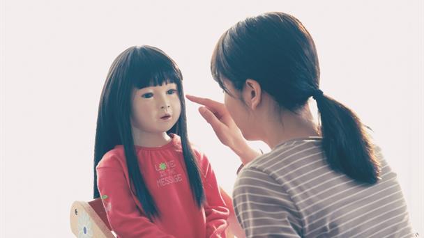 Fujiwara incorporó una asimetría facial que permite que la muñeca proyecte distintas emociones según el ángulo de cámara. Para la filmación se fabricaron dos versiones: una con detalles minuciosos para los primeros planos y otra más ligera destinada a las escenas de movimiento.
