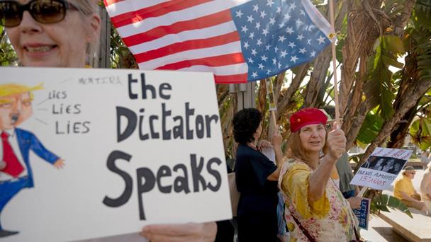 "Dado el conocido gusto de los manifestantes de Portland por usar disfraces de gallina, trajes inflables de rana o incluso nada en absoluto al expresar su desacuerdo con los métodos empleados por ICE (la policía migratoria), los observadores podrían sentirse tentados a considerar la decisión de la mayoría, que acepta la caracterización del gobierno de Portland como una zona de guerra, como simplemente absurda", expuso Graber.
