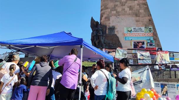 A dos días del 24 de diciembre, integrantes del colectivo Luz de Esperanza entregaron juguetes a niñas y niños de familias buscadoras en la que ahora se conoce como Glorieta de las y los desaparecidos.