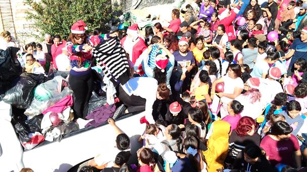 "Llegaron al punto donde la gente está animada, mira toda la gente que hay ahorita y todos recibiendo sus regalos (...) Traemos de todo, traemos juguetes, pelotas, balones, ropa como sudaderas, cobijas, despensas, pollos, traemos muchas cosas".