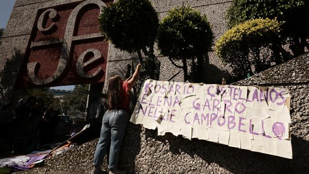 En la entrada de la sede de la FCE en la capital mexicana, las activistas, agrupadas como 'Las horribles', leyeron un pronunciamiento de “condena pública al machismo y misoginia”, en el que pidieron a Taibo tener “dignidad” y dejar la dirección de la mayor editorial pública del país.