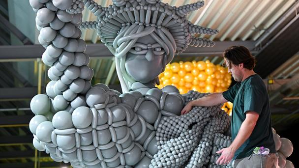 Entre las obras de la muestra "Luftballonwelten" (Mundos de globos), que podrá verse del 14 de febrero al 12 de abril en el Pineapple Park, la antigua nave de correos de la capital bávara, se encuentran la Estatua de la Libertad, la Esfinge o alegres delfines.