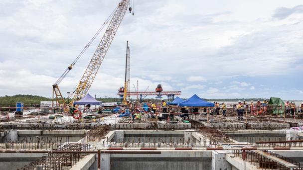 Todavía harán falta dos años y medio de trabajos para completar las infraestructuras y alcanzar el objetivo de un ritmo de producción anual de 60 millones de toneladas extraídas.