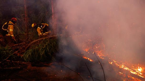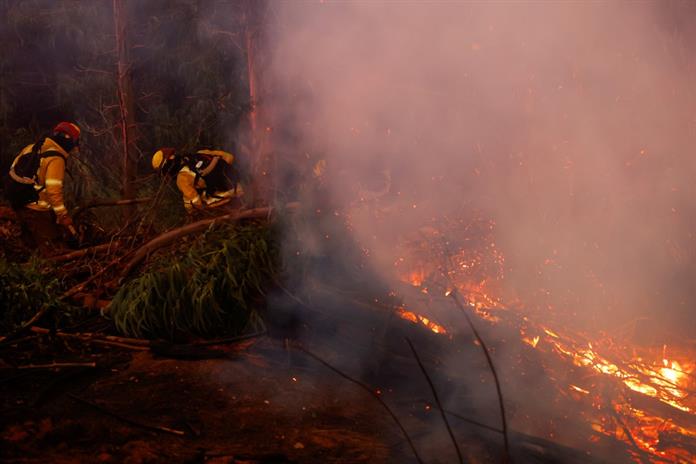 El martes unos 4.000 bomberos combatían 21 incendios en las tres regiones. Las llamas han devorado unas 40.000 hectáreas de bosques y terrenos, de acuerdo al reporte actualizado de la Corporación Nacional Forestal (Conaf).