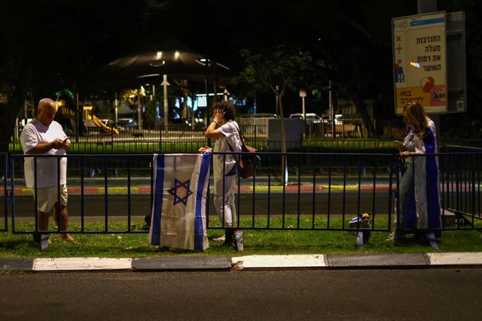 Muchos llevan allí desde el amanecer, con fotografías de los rehenes y banderas israelíes con un lazo amarillo, un símbolo del movimiento que pedía la liberación de los secuestrados por el movimiento islamista palestino Hamás.