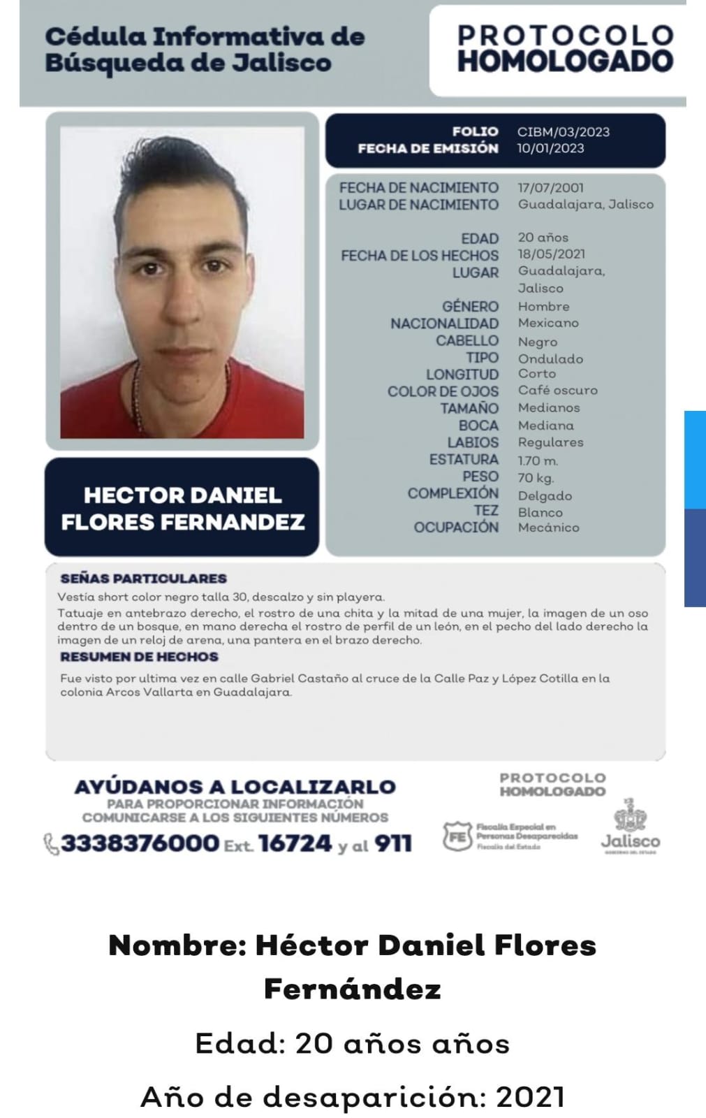 El Tercer Tribunal Colegiado en Materia Penal del Tercer Circuito reconoció como víctima de desaparición forzada a Héctor Daniel Flores Fernández, desaparecido desde 2021 por parte de elementos la Fiscalía del Estado de Jalisco. Héctor Daniel todavía no ha sido localizado.