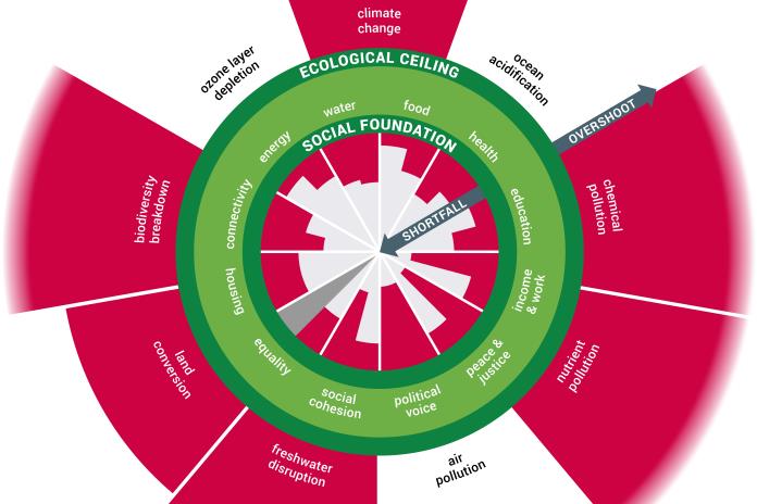 Para Kate Raworth, "seguir la tendencia global del Doughnut revela una realidad estremecedora: la obsesión por perseguir un crecimiento del PIB sin fin -especialmente en los países más ricos- está llevando rápidamente al mundo lejos de -y no hacia- un futuro próspero. Es hora de centrarse en crear economías que sean regenerativas y distributivas por diseño, porque esto será el sello del progreso del siglo XXI".