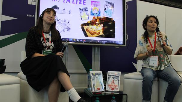 “Muchas gracias, muchas gracias, soy Lize me da muchísimo gusto ver tanta gente aquí, gracias por estar aquí, gracias también por la presentación que das de mí, creo que cubres la mayor parte. Bueno, yo dibujo fantasmitas sobre todo, básicamente.