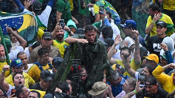 Los manifestantes estaban cerca de la Plaza do Cruzeiro, donde estaba previsto que finalizara la marcha promovida por el diputado ultra Nikolas Ferreira en defensa del exmandatario, condenado y preso por tramar un golpe de Estado.