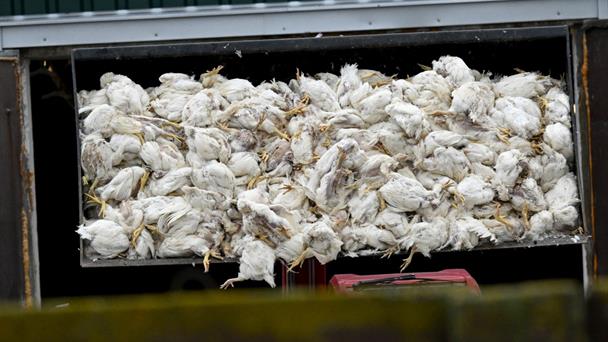 En Neutrebbin, cerca de la capital Berlín, una empresa agrícola tuvo que sacrificar unos 50.000 pollos desde el inicio de la epidemia, que fueron vertidos por centenares en el remolque de un camión con ayuda de una retroexcavadora, constató el lunes una periodista de AFP.