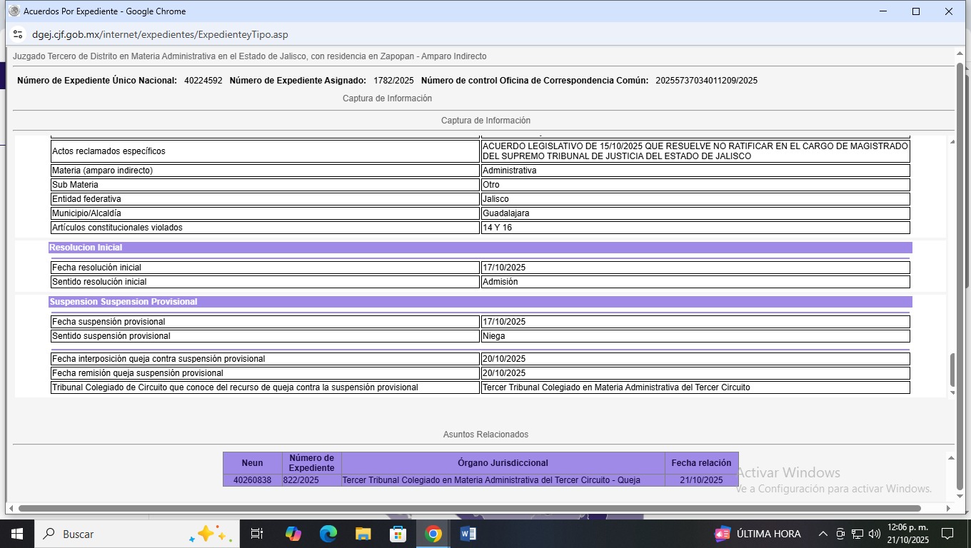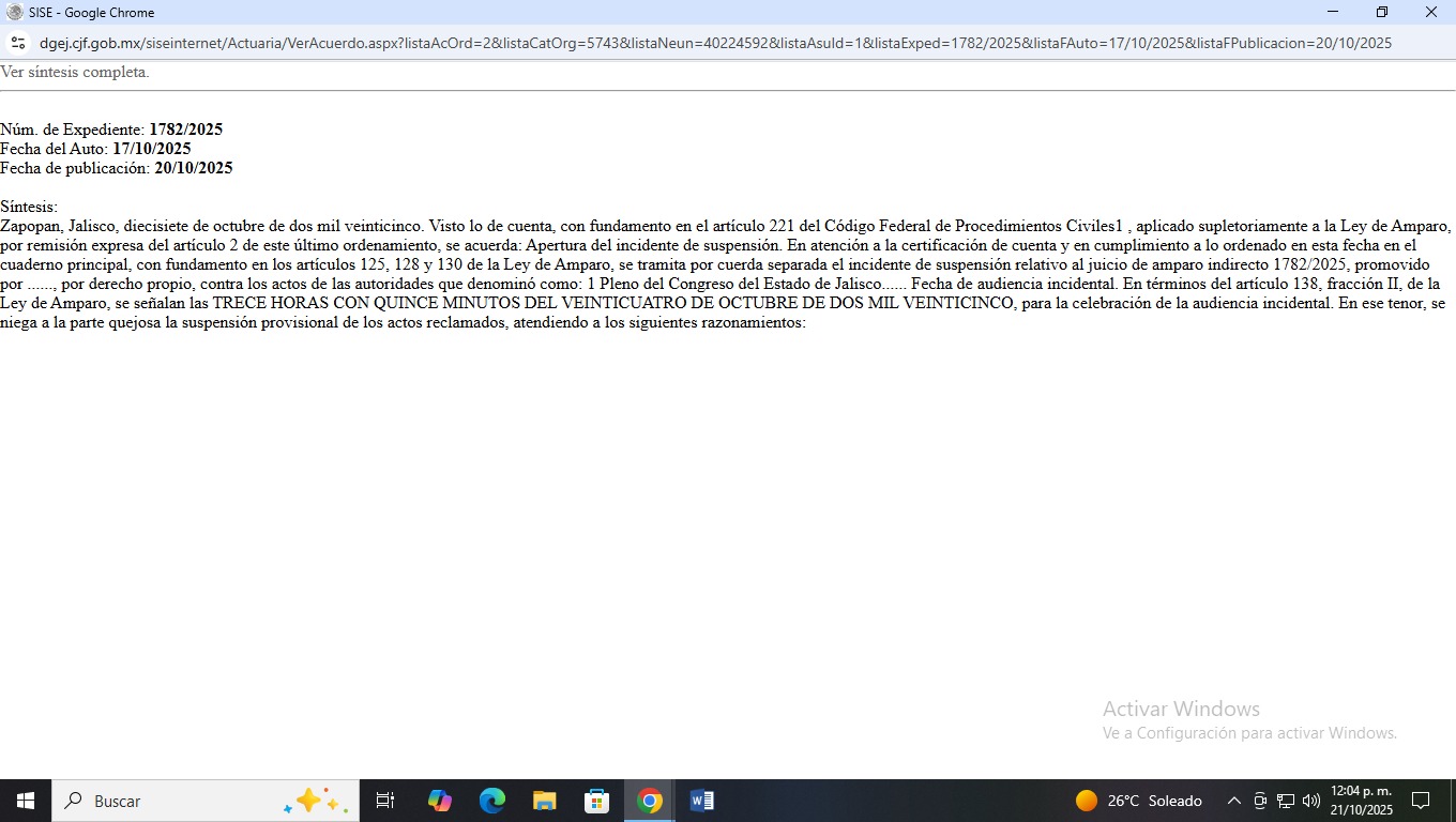 Y de inmediato acudió al juicio de amparo, lo tramitó ese mismo día pidiendo que “las cosas permanecieran como están”, es decir, él en el cargo y cobrando, lo cuál finalmente no sucedió.