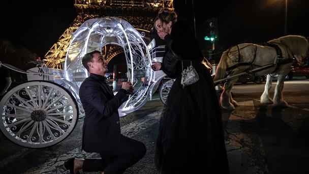 En la ciudad del amor, las pedidas de mano adquieren aires de cine entre carrozas de Cenicienta, terrazas privatizadas y puestas en escena a medida, creando un lucrativo mercado alimentado por clientes internacionales.