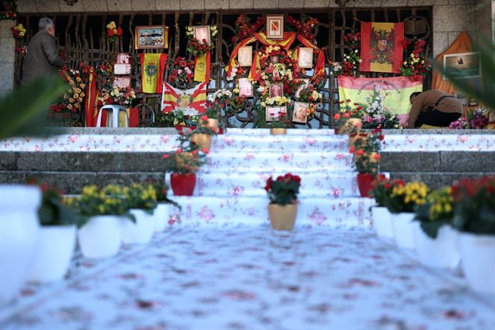Como cada año, unas pocas decenas de nostálgicos del régimen se reunieron el jueves en la tumba de Franco, ahora enterrado en un cementerio cerca de Madrid tras su exhumación del mausoleo del Valle de los Caídos (hoy de Cuelgamuros) en 2019.