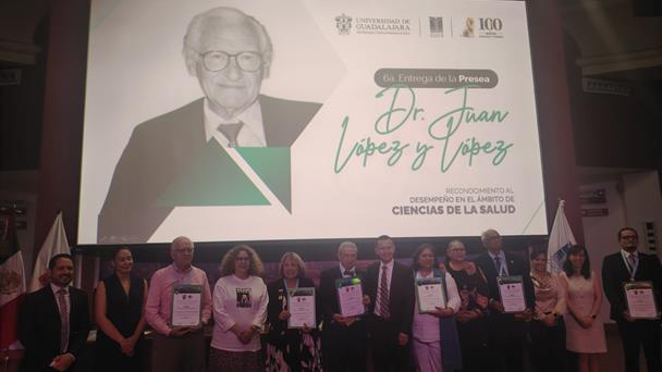 En el marco del Día del Médico, se entregó la presea Juan López y López a destacados profesores e investigadores del Centro Universitario de Ciencias de la Salud por su trayectoria y aporte a la vida académica del centro.
