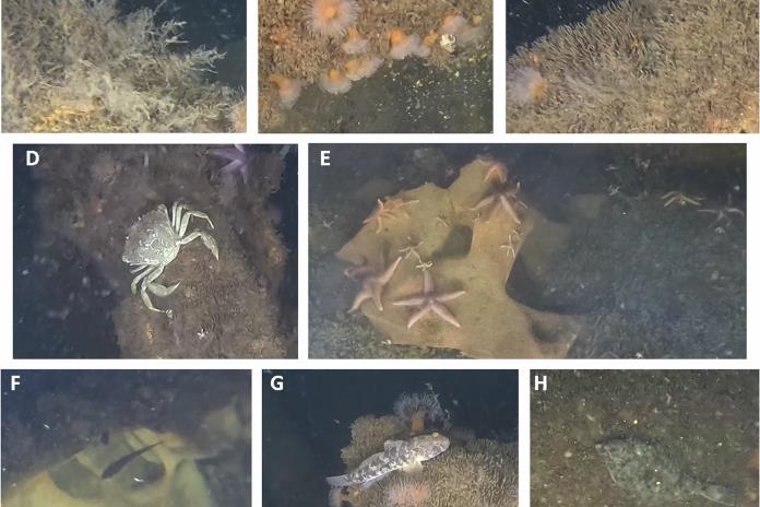Los investigadores, encabezados por el Departamento de Investigación Marina de Alemania identificaron ocho especies de epifauna (que vive en la superficie de estructuras marinas) invertebrada y tres de peces, como cnidarios y anémonas.