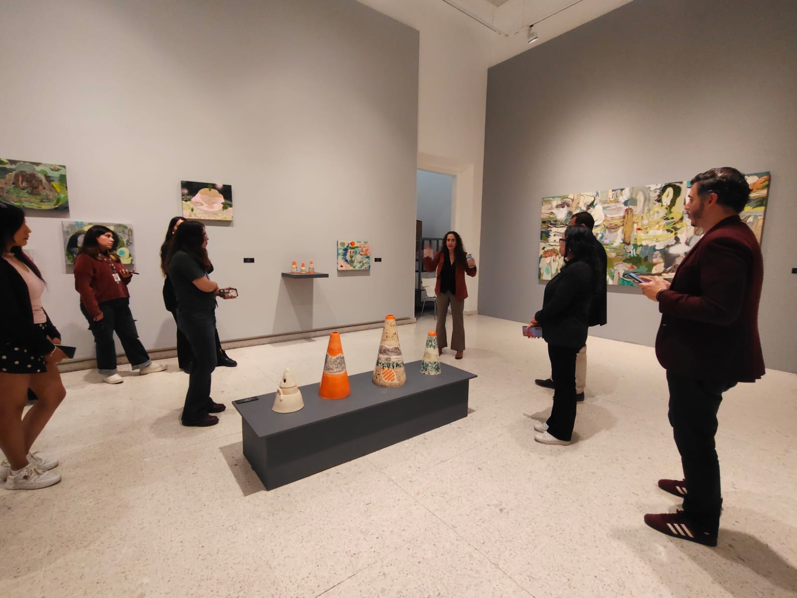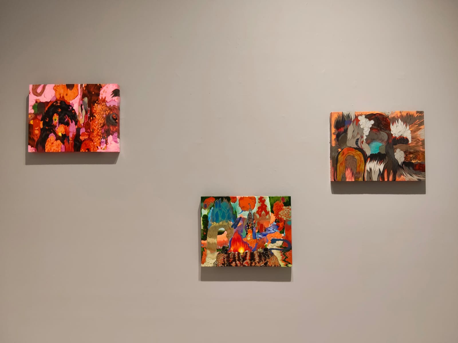 Todo inicia con un portal creado por plantas para ingresar a la exposición, que forma parte de la intención de la artista de activar los sentidos y conectar con cada visitante, con colores vibrantes, referencias a lo orgánico y obras de pequeño y gran formato, llenas de simbolismos.