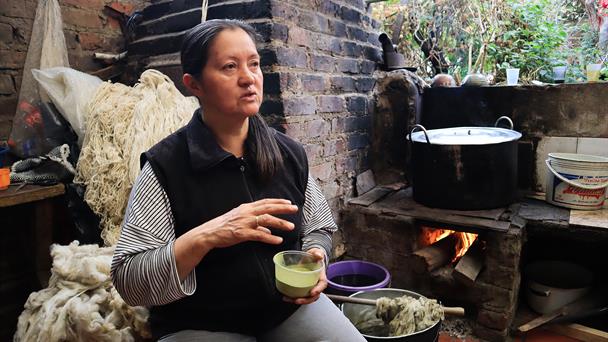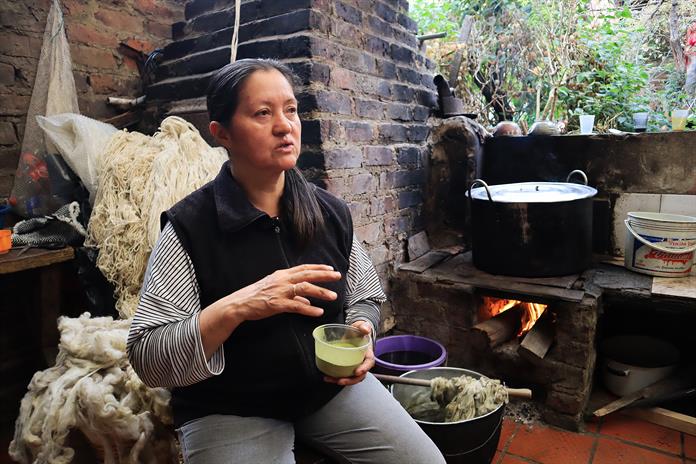 Para jugar con los colores, introducen la harina de la planta junto a otros mordientes, sustancias como el vinagre que alteran el PH de las fibras, lo que permite que adquieran tonos amarillos, verdosos y marrones. Una vez teñidos, el vellón y la lana terminan convirtiéndose en cojines, bufandas o jerséis de crochet.