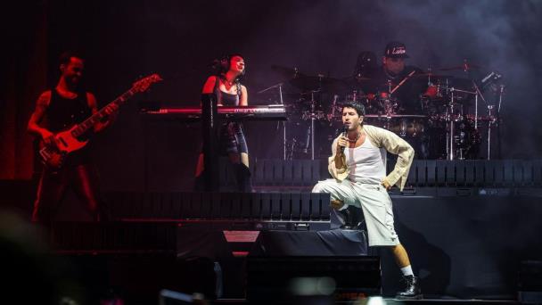 El repertorio avanzó con temas como “Una Noche Sin Pensar”, “Disco Rayado” y “Ojos Marrones”, piezas que conectaron de inmediato con el público.