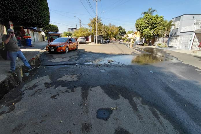 Desde hace casi 15 días, una fuga de agua limpia mantiene con encharcamientos la calle Caballete, en la colonia El Manantial, en Guadalajara. Pese a los constantes reportes de los vecinos al personal del SIAPA, únicamente se les informa que el caso ya fue turnado;