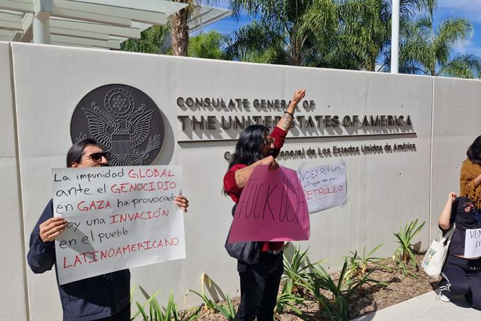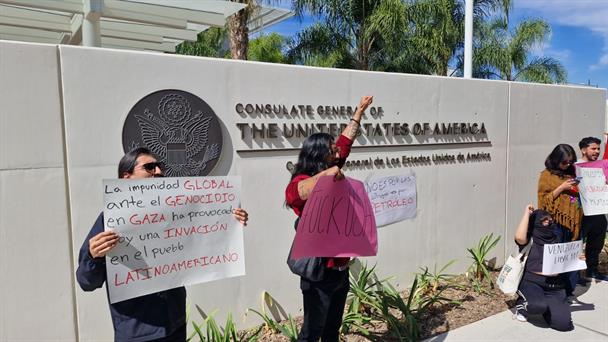 Un grupo de ciudadanos se manifestó la mañana de este sábado en las afueras del Consulado de Estados Unidos en Guadalajara para protestar contra la irrupción militar estadounidense en Venezuela y la detención del presidente Nicolás Maduro.