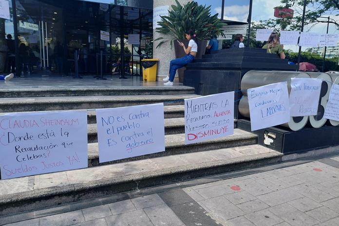 Trabajadores de distintas oficinas del Servicio de Administración Tributaria (SAT) en Jalisco realizaron una manifestación pacífica denominada “brazos caídos” para