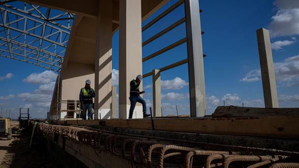 Gran parte de la Nueva Capital Administrativa aún está en construcción y los trabajadores llegan todos los días en autobús.