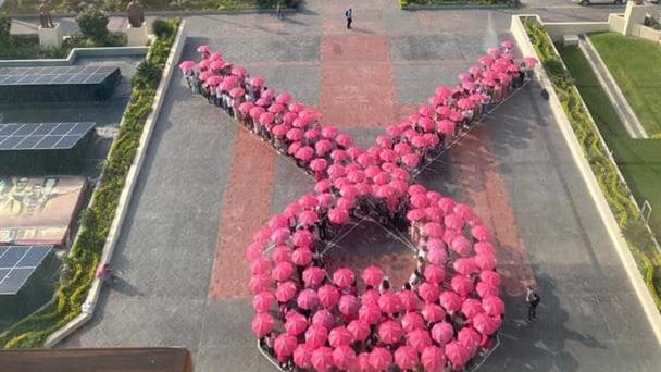 - Bajo la coordinación de la Coordinación General Académica, alrededor de 200 integrantes de la comunidad universitaria —entre estudiantes, profesores y personal administrativo— se vistieron de rosa para formar un gran lazo humano, símbolo de unidad, empatía y sensibilización.