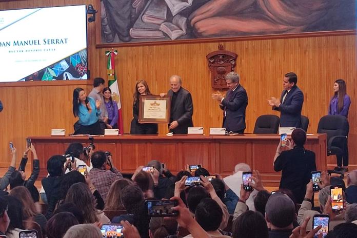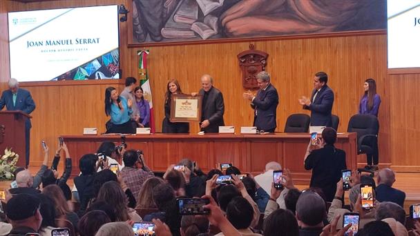 El cantautor Joan Manuel Serrat fue reconocido con el Doctorado Honoris Causa por la Universidad de Guadalajara, en el marco de la celebración de la Feria Internacional del Libro de Guadalajara.