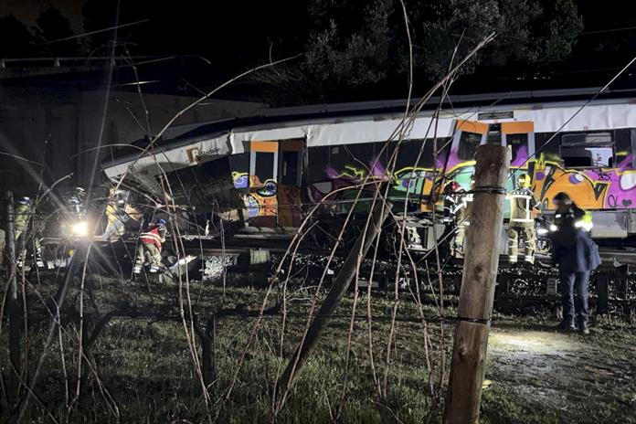 El maquinista de un tren murió y otras 37 personas resultaron heridas, cinco de ellas de gravedad, al chocar este martes contra un muro de contención que cayó a la vía, entre Gelida y Sant Sadurní d'Anoia (Barcelona), a causa de un temporal.