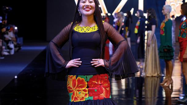 La diseñadora, nacida en la comunidad indígena zapoteca, debutó en este espacio de promoción de la moda para mostrar piezas inspiradas en la fortaleza de las mujeres de esa región y la belleza de sus tradiciones.