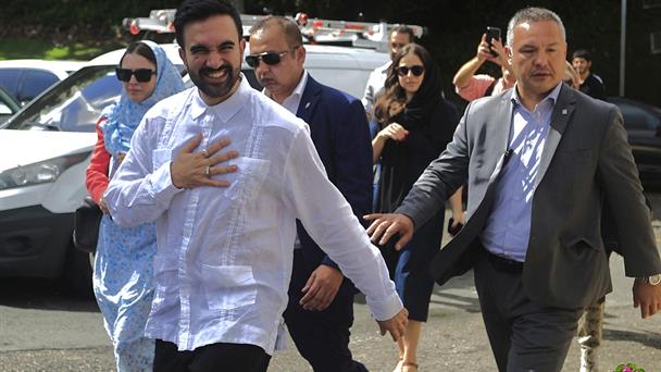 - Mamdani repartió comida en las inmediaciones de la mezquita, rodeado de fanáticos que le pedían fotos, le felicitaban por su victoria en las elecciones y portaban carteles que rezaban: 'Zohran for New York city'.