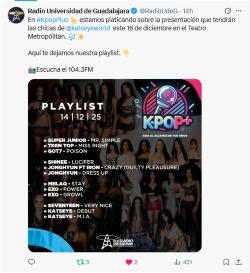Nuestra playlist de hoy 14 Diciembre en K-pop Plus “Asia a través de tus oídos”.
