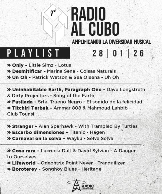 Este miércoles en #RadioAlCubo tenemos música de Little Simz, Marina Sena y muchas más propuestas sonoras. Escucha a @BlancdeBlancs en el 104.3FM