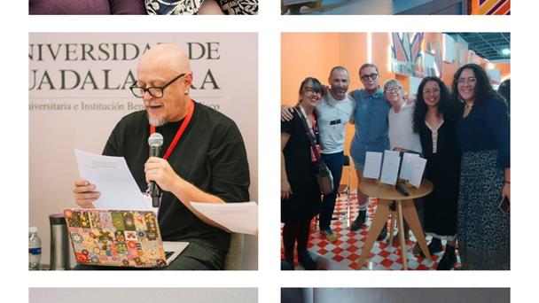 En esta ocasión charlamos con el poeta Octavio Ignacio Pérez para conocer sus actividades durante esta semana. La poeta Lisi Turrá, trae dos novedades e invita a leer sus libros “Claustrofobia del Mundo”, y “Prêt-à-porter”. Visitamos a los editores Lernen Books Juan Felipe Cobián y Jorge Orendain para conocer su colección de literatura “Litelecto”. Encontramos al editor de Espina Dorsal Gustavo Iñiguez, quién trae novedades editoriales y también su libro “Prótesis”. Mariana González, comparte cómo se vive la Feria desde la editorial Cal y Arena. Juan Romo, invita a leer su primer libro de cuentos “Completamente en vivo”. Y el poeta y editor Juan Azuara, toma un tiempo para hablar sobre “La bruma de las aves al amanecer” de Editorial Garrobo.